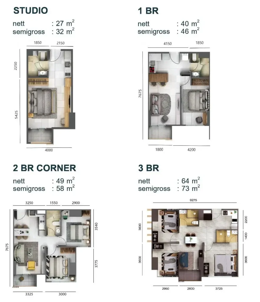 Apartemen yang terdiri dari 24 lantai dan memiliki 5 lantai parkir dan 1 basement ini dirancang menjadi sebuah hunian vertikal yang dapat memenuhi kebutuhan penghuninya akan sebuah hunian yang nyaman dan selaras dengan gaya hidup modern yang praktis dan dinamis.